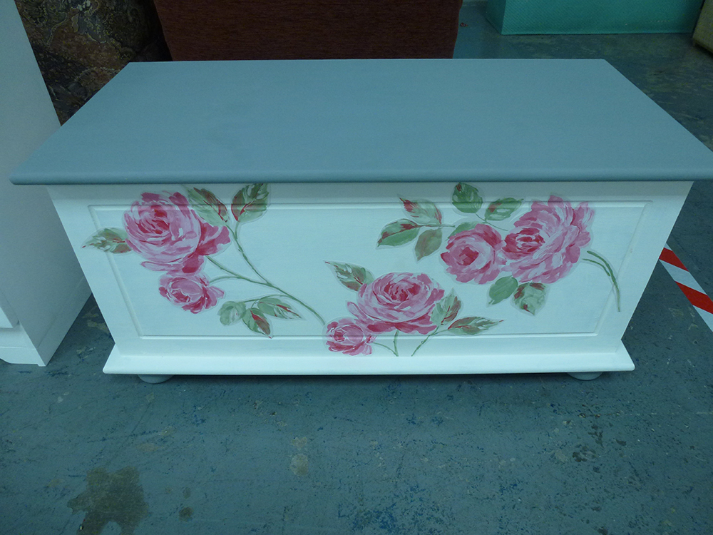 This selection of furniture is part of my 'Rose Floral' design. The method of decorating recycled furniture is called decoupage. So, this part of my 'up-cycling' furniture section