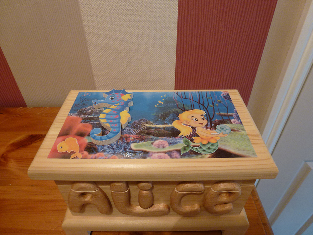 These themed boxes have a sea and fish themed, requested by the client. The 2 boxes are for Alice and Arthur.