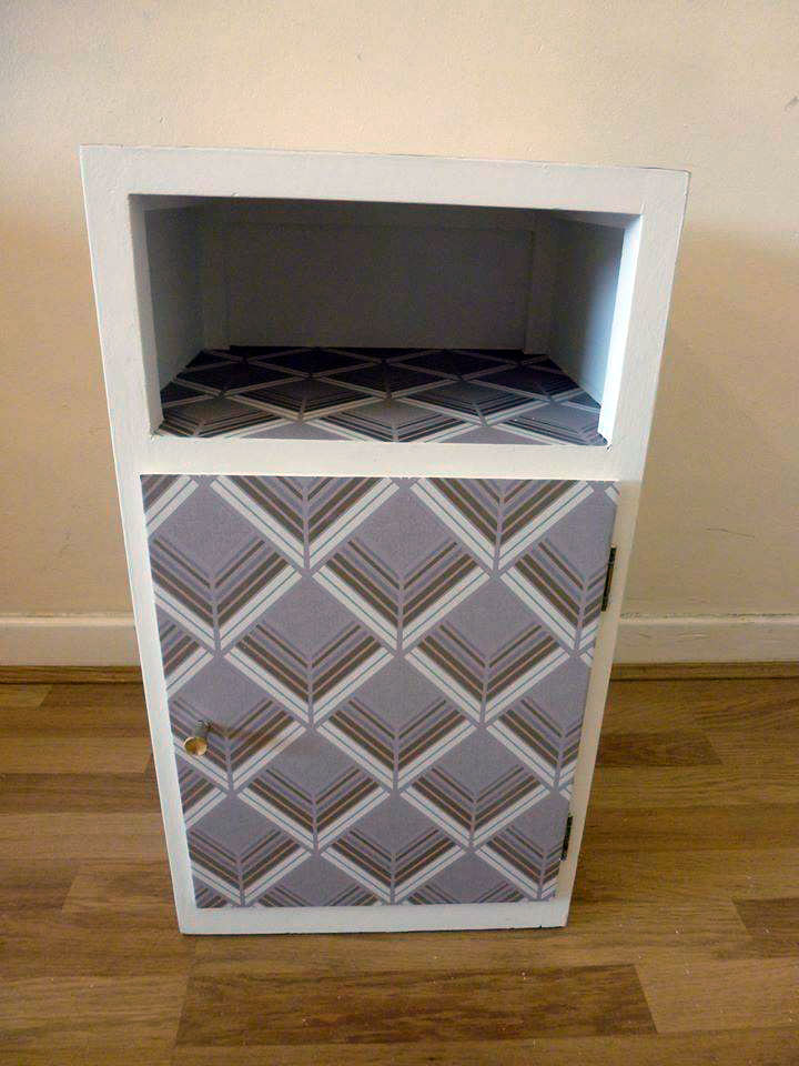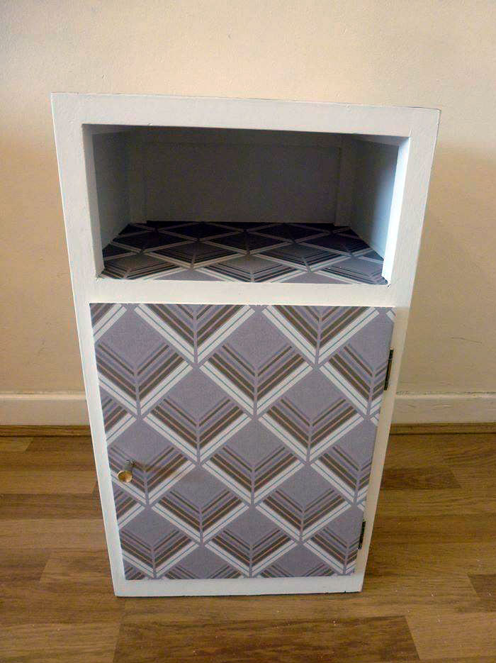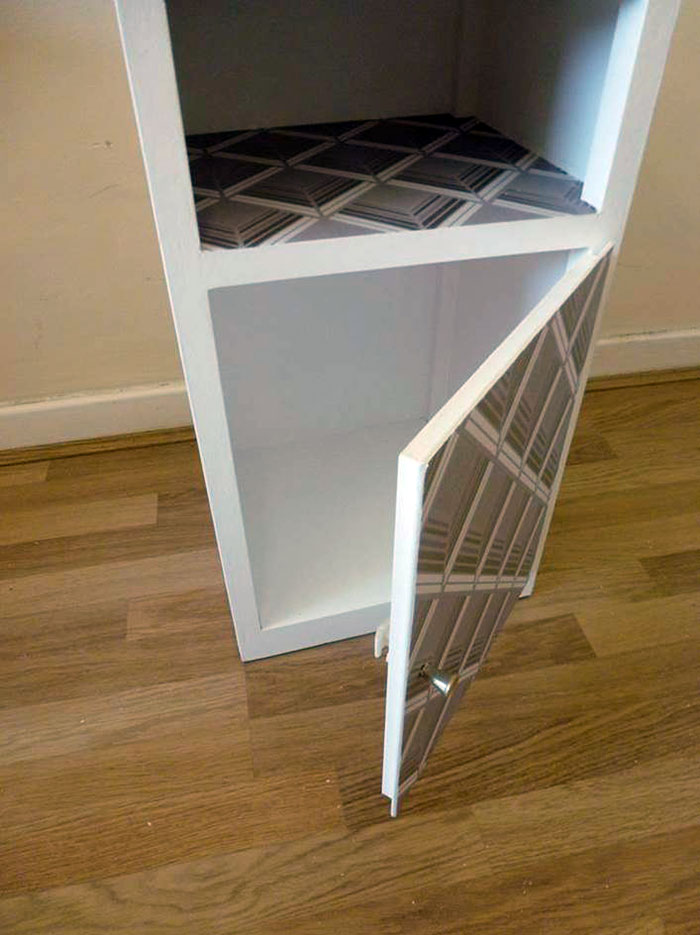The grey geometric design is also wallpaper and gives it a 3 dimensional effect when viewed from various angles.