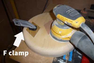 In this case an `F` clamp was used to hold the work in position whilst the sanding activity was in progress.