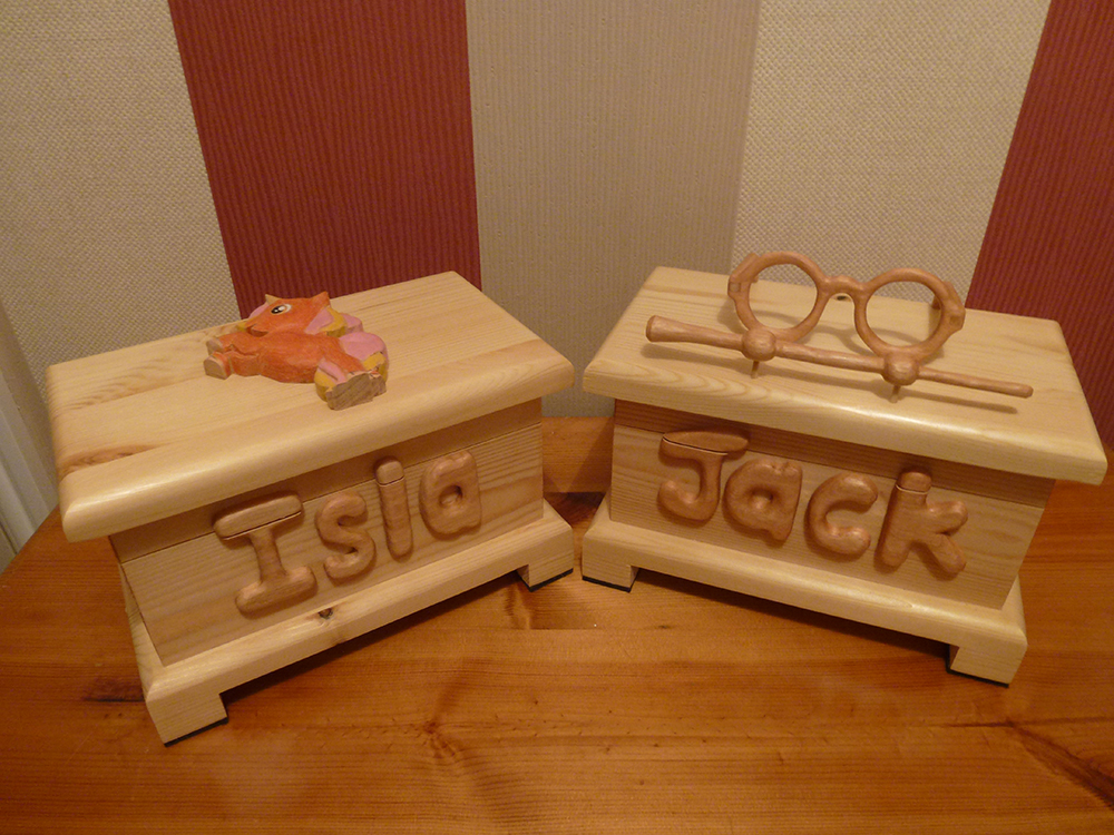 These 2 box's were requested by the client whose grandchildren are named Jack and Isla.