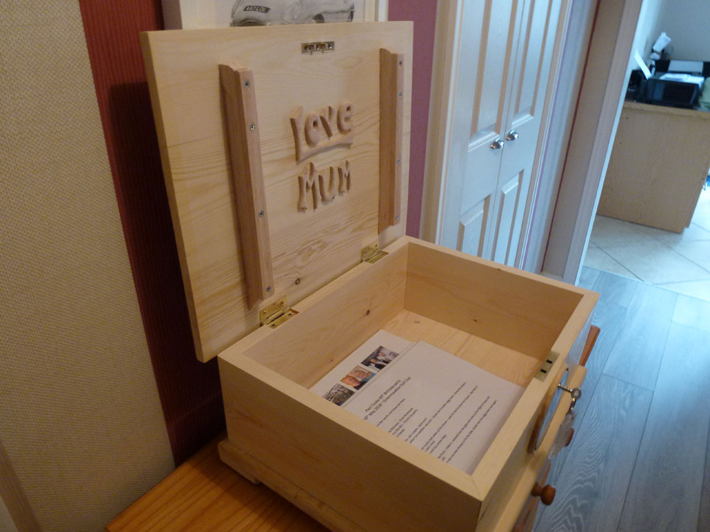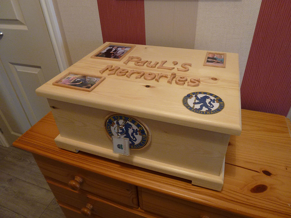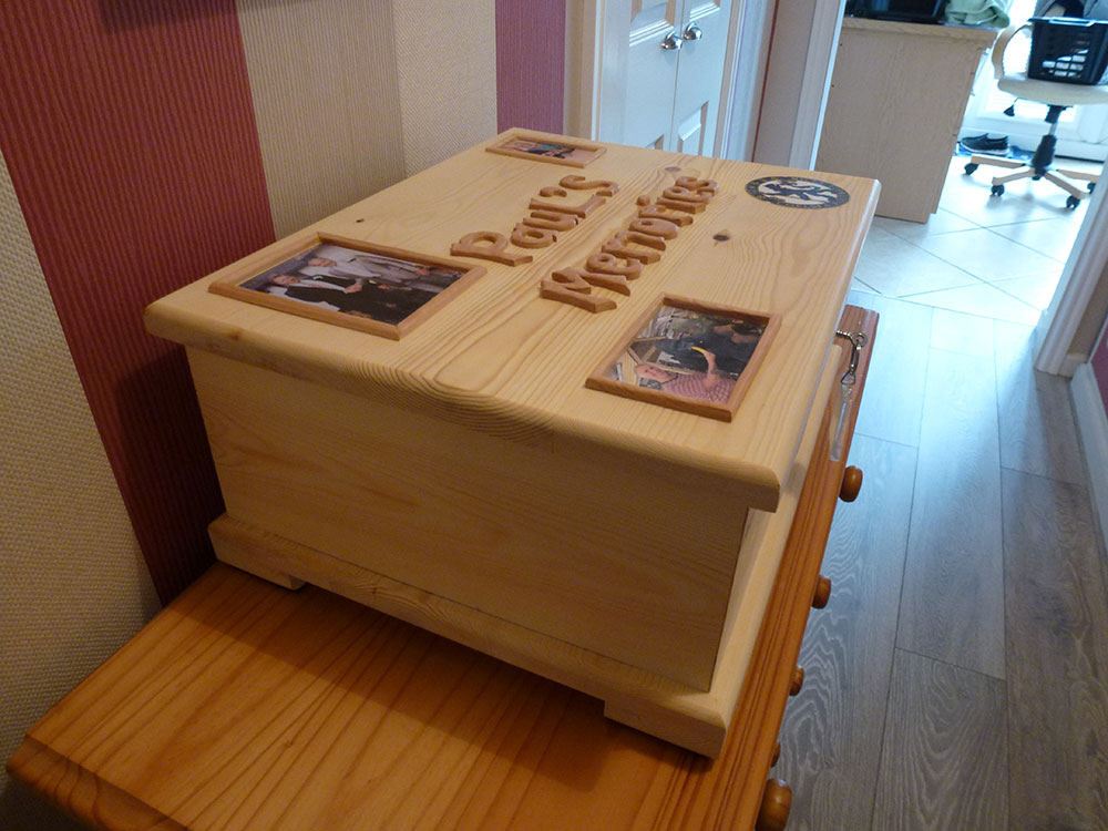 This box was commissioned by a Life long friend’s Mother. My friend Paul sustained life changing difficulties and complications with memory loss after suffering a heart attack. The heart attack rob Paul of all the memories that enriched his life. After a period of time working with professionals  to try and allow Paul time to recollect those missing memories, he has gained some recollection. This Box has a collection of those memories from his life and that will help that healing process.