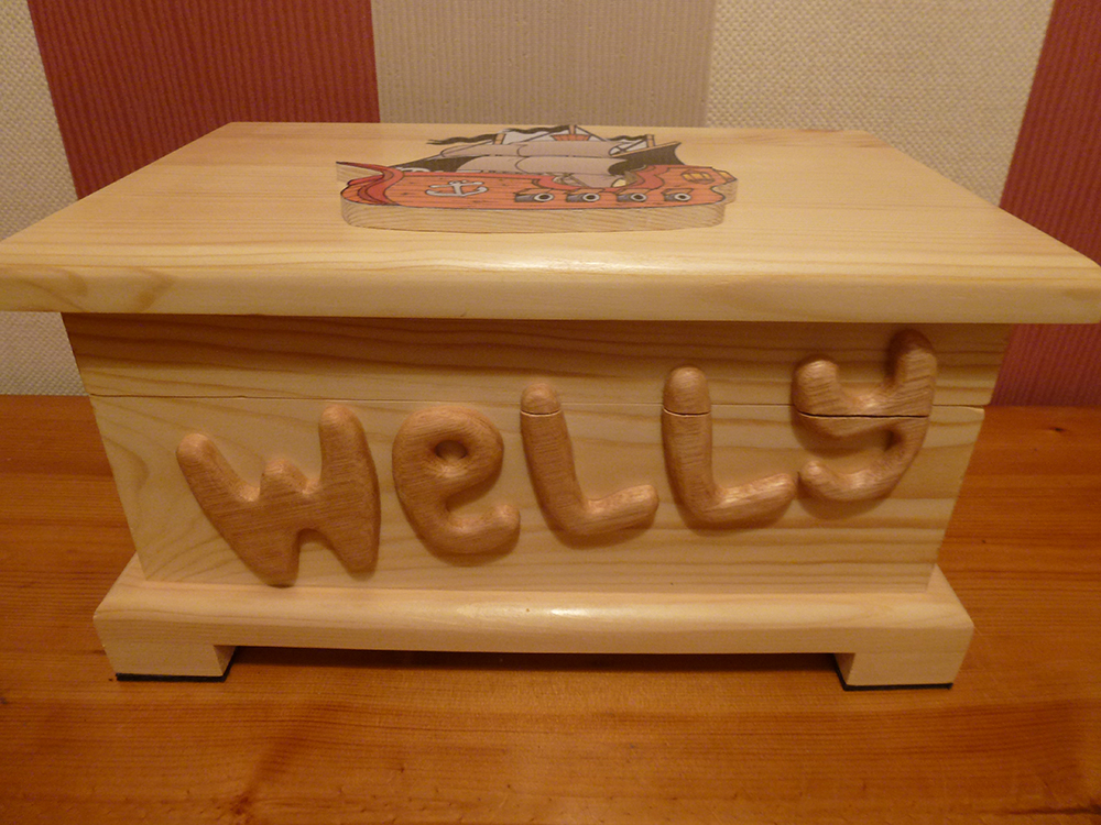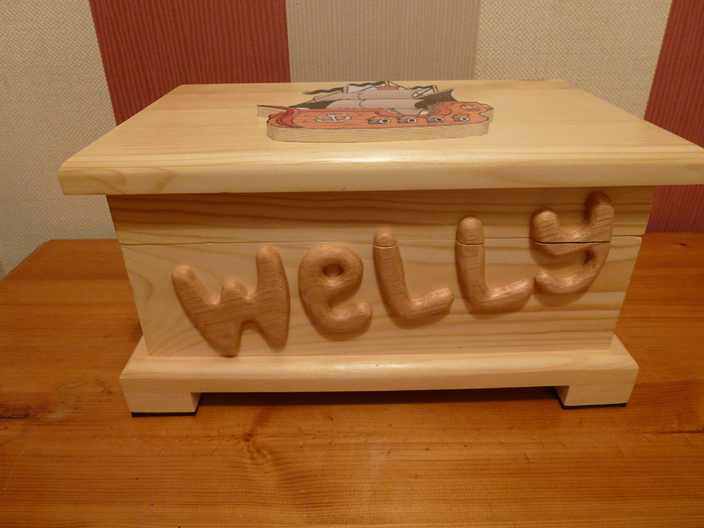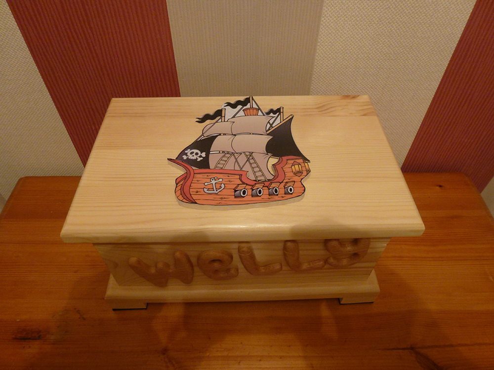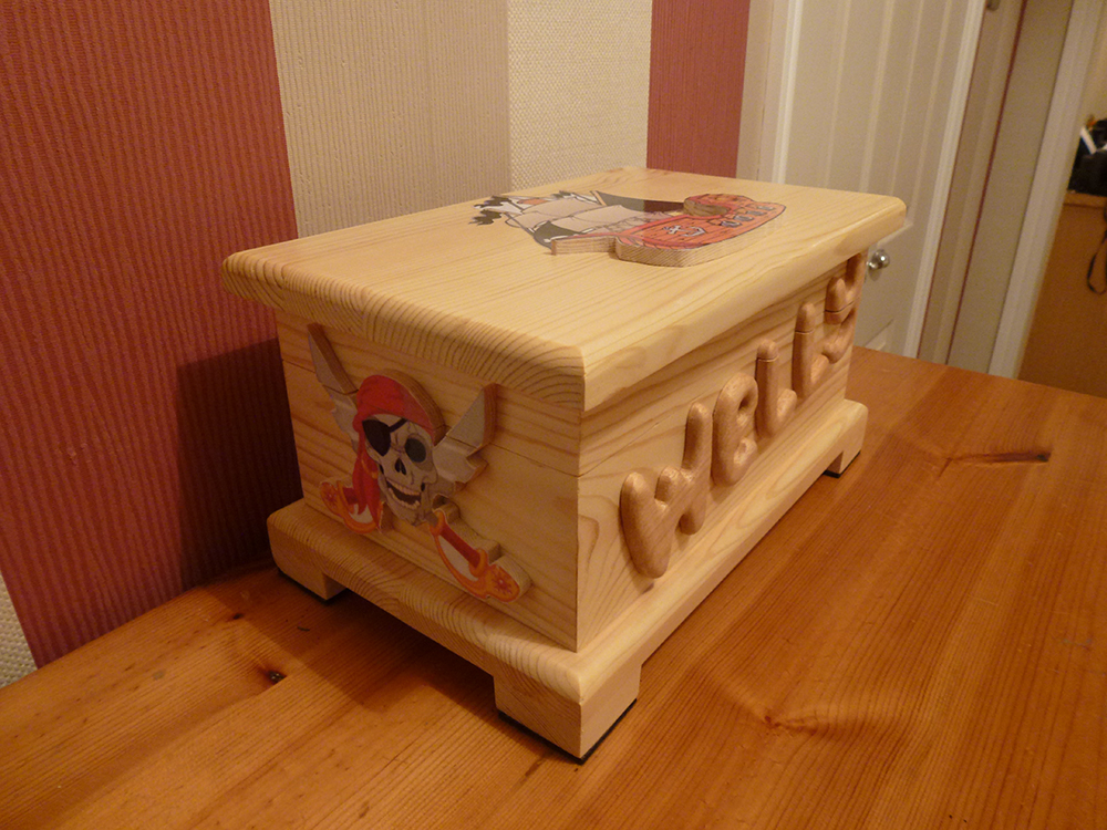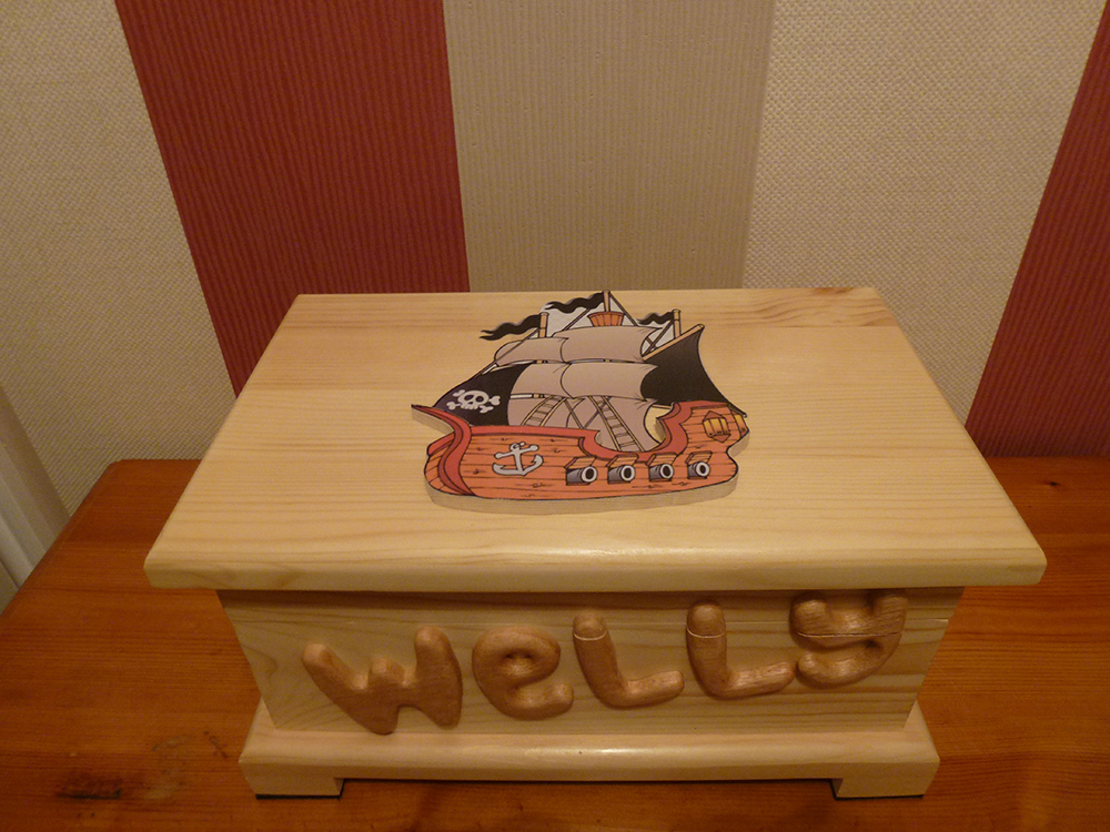 This is the 1st of 3 themed boxes. This 1st box 'Welly' and it has a 'pirate ship' theme. This was a request from the grandmother.