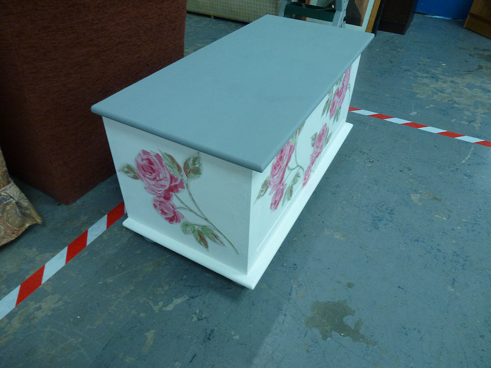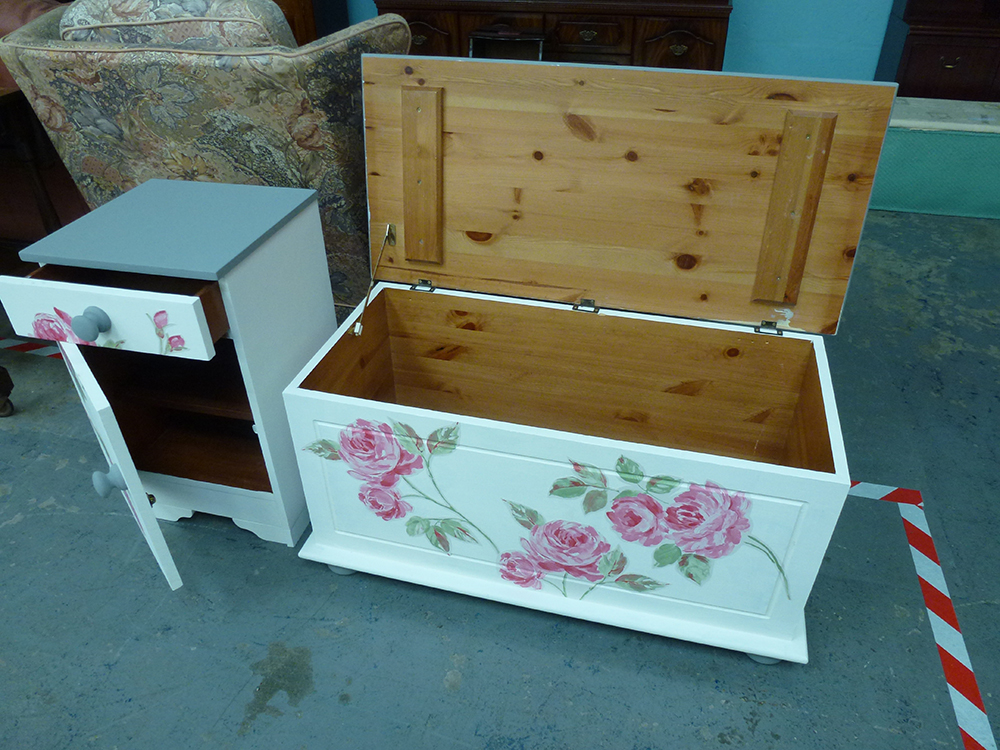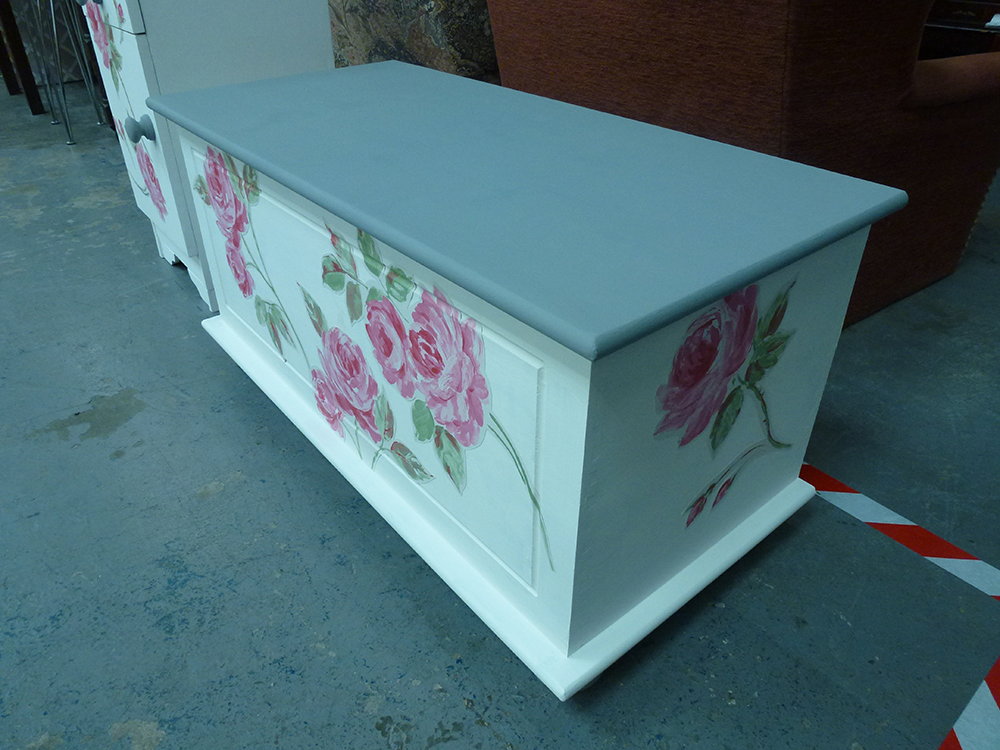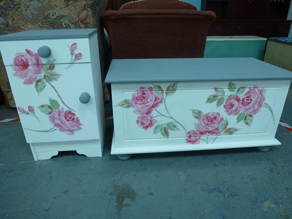 This selection of furniture is part of my 'Rose Floral' design. The method of decorating recycled furniture is called decoupage. So, this part of my 'up-cycling' furniture section