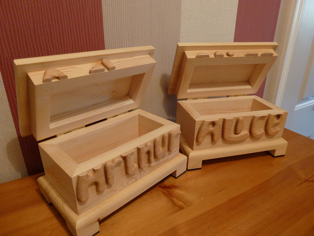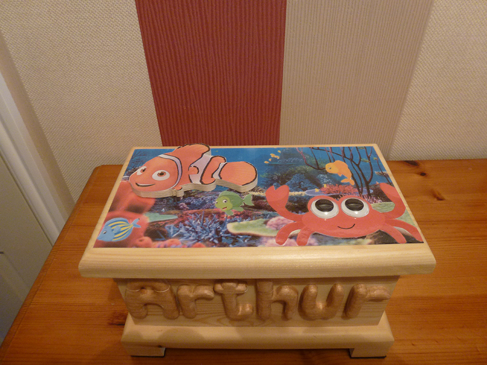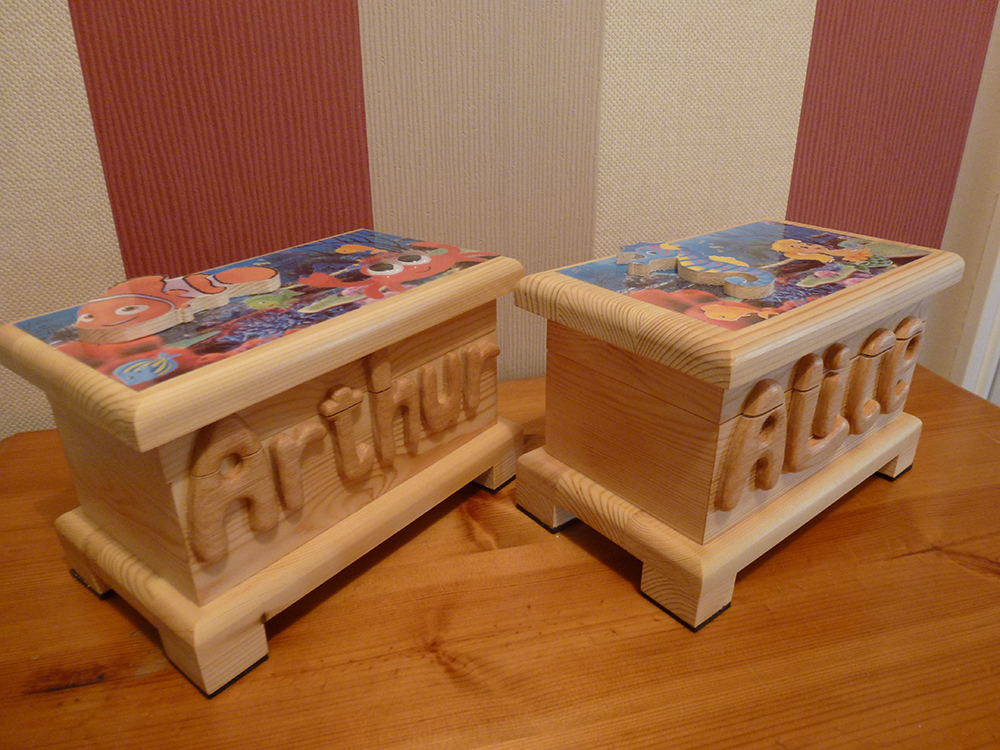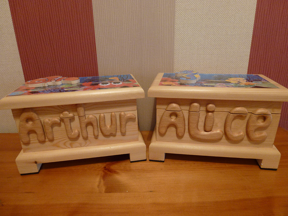 These themed boxes have a sea and fish themed, requested by the client. The 2 boxes are for Alice and Arthur.