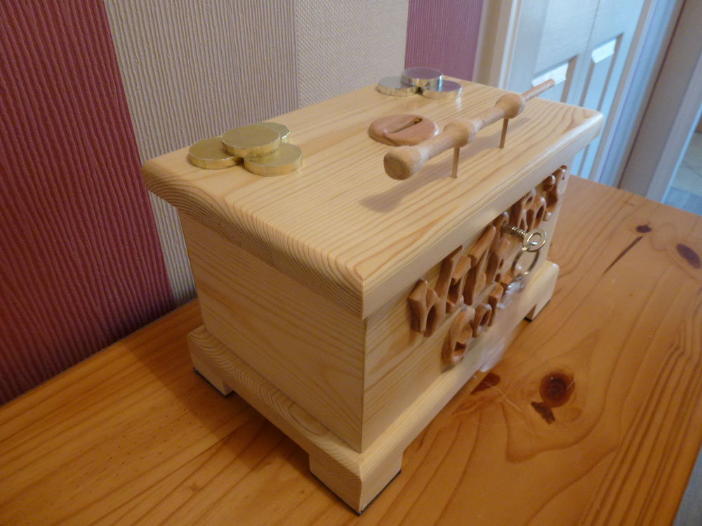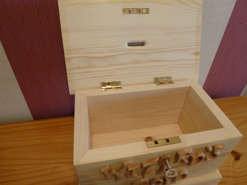 This creation is a mid-sized box that has an added feature that allows you to lock the box. As it is a money box, I felt this was a welcome addition. The lock is a half mortise lock and key.
